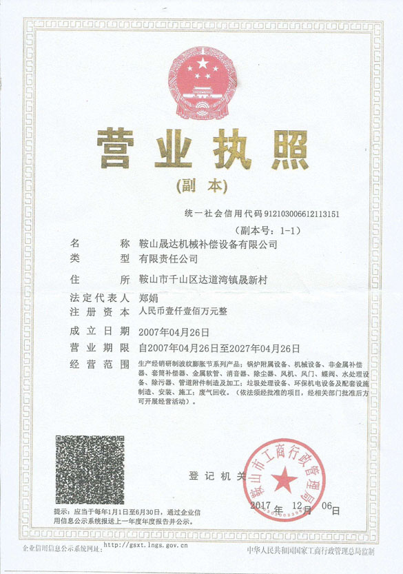鞍山晟達機械補償設(shè)備有限公司 版權(quán)所有 Copyright 2005-2011 All Rights Reserved